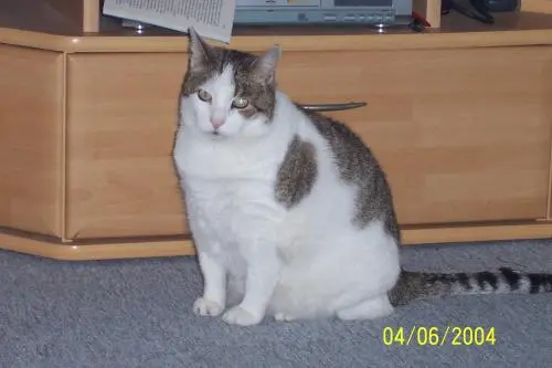Mein Dicker Ja so haben wir Dich immer genannt, 17,5 Jahre durften wir Dich um uns haben, doch am 24.2.09 mußten wir von Dir Abschied nehmen. Es war so schwer die Entscheidung zu treffen Dich nun über die Regenbogenbrücke gehen zu lassen, aber Deine trauigen Augen haben uns gesagt Du möchtest jetzt gehen. Nun bist Du wieder mit Deinen Freunden zusammen und kannst im Gras die Sonne genießen so wie Du es immer gern gemacht hast. Ich weiß noch genau als wir Dich aus dem Tierheim bekommen haben, Du warst man gerade 13 Wochen alt und so klein und dünn. Aber aus Dir ist ein großer dicker Kater geworden, eben mein Dicker von 8Kilo. Du warst ein so gutmütiger und schmusiger gesunder Kater. Hast Dich mit all unseren Haustieren vertragen, selbst unsere Farbmaus durfte bei Dir auf dem Rücken sitzen. Hast so viele Umzüge mit uns mitgemacht, aber Du hast Dich immer schnell eingelebt man brauchte keine Angst haben das Du von Deinem Freigang nicht wieder kommst. Aber Du konntest auch manchmal nerven,wenn Du mich morgens mit Deinem lauten schnurren wecken musstest, weil Du hunger hattest und wehe ich war nicht schnell genug, dann hast Du mir während ich auf dem Klo saß in die Waden gezwickt. Ach mein Dicker Du fehlst mir und den anderen so so sehr. Du wirst immer in unserm Herzen bleiben. Du warst etwas ganz besonderes. Machs gut Puschel wir haben Dich sehr lieb. Claudia, Stefan und Nadine